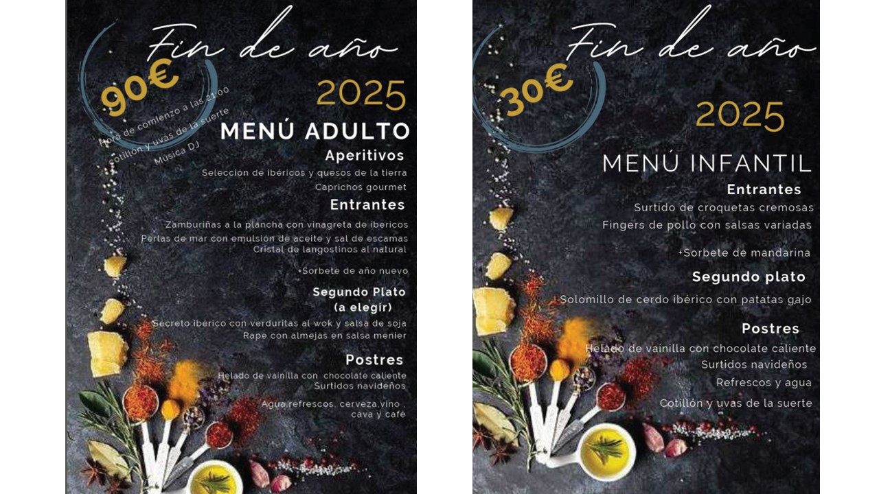 Nota: Las consumiciones tras la cena no están incluidas en el menú; se abonarán en barra al ser servidos.